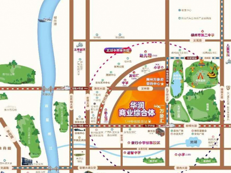 万象府择址柳东中轴,于龙湖中央商务区,纵享城央繁华配套,是央企华润又一人居巨筑。柳州万象府坐落于龙湖CBD,总建筑面积52万m2,商业建筑面积16232m2,住宅建筑面积283500m2,周边卡乐星球、克里湾水上乐园等大型娱乐配套环绕,周边有规划的中小学、幼儿园……更重要的,是它的商业部分柳州华润置地广场,正式打破柳东新